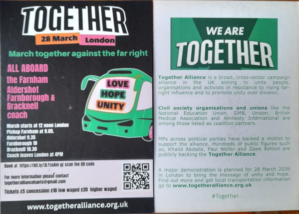 Members of Blackwater Valley Friends of the Earth are proud to be taking part in the Together Alliance (demonstration/protest/event) on the 28th March. To encourage local people to come along local people have organised transport with pick ups from Farnham, Aldershot, Farnborough and Bracknell. This will avoid the need to use shared public transport to […]